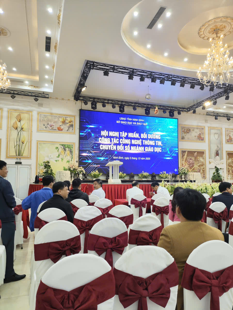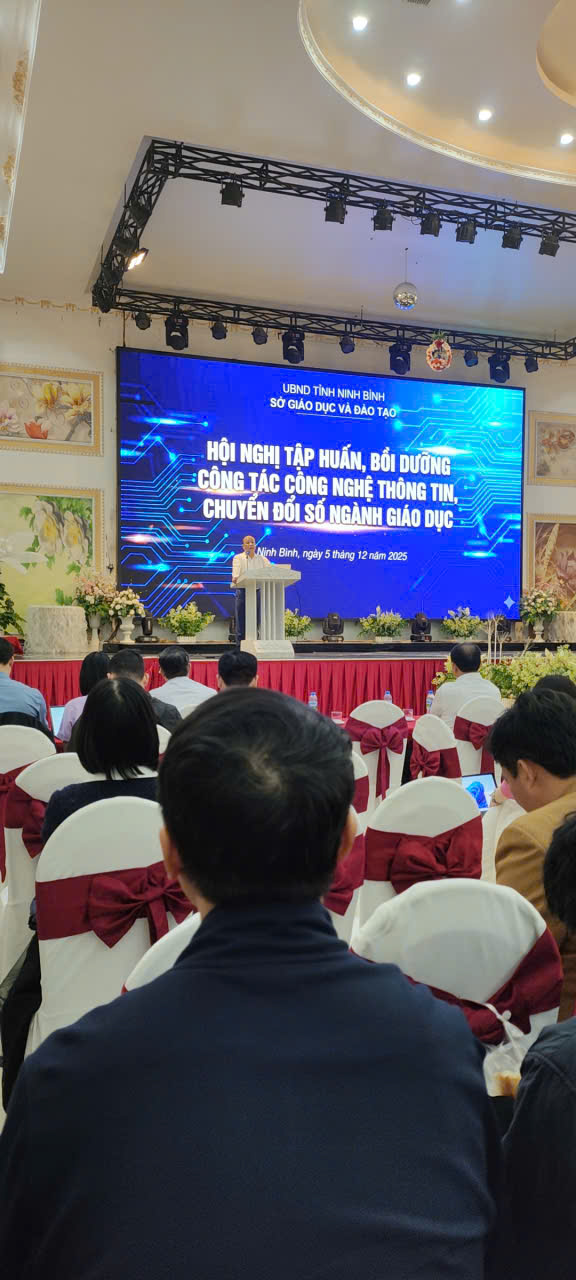 Trong tháng 12 năm 2025, thực hiện chỉ đạo của Sở Giáo dục và Đào tạo tỉnh Ninh Bình, Cán bộ và toàn thể giáo viên Trung tâm GDNN – GDTX Bình Lục đã tham dự các lớp tập huấn về nâng cao năng lực Chuyển đổi số và Ứng dụng công nghệ AI trong giảng dạy. Tại buổi tập huấn về nâng cao năng lực Chuyển đổi số tại phường Nam Định, Đơn vị đã được các đồng chí chuyên viên của Sở hướng dẫn về bộ chỉ số đánh giá mức độ chuyển đổi số, hướng dẫn một số kĩ năng ứng dụng trí tuệ nhân tạo AI trong quản lí và điều hành đơn vị. Đến ngày 12 và 13/12/2025, đại diện các tổ nhóm chuyên môn đã được các chuyên gia của Trung tâm Tin học ngoại ngữ Tỉnh Ninh Bình hướng dẫn việc ứng dụng công nghệ AI trong soạn bài giảng, Thiết kế bài kiểm tra. Đây là những kiến thức và kĩ năng hết sức cần thiết trong công tác giảng dạy của những năm học tiếp theo. Dưới đây là một số hình ảnh trong các buổi tập huấn.